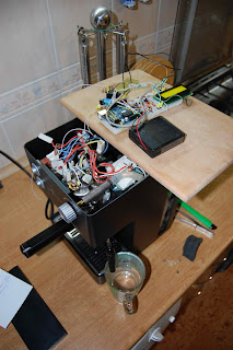 Trampolino is an automatic liquid pouring system built with Arduino UNO R3. It uses no pumps and almost everything you have in your Arduino Kit. Trampolino can pour discrete units of liquid automatically. Through the calibration procedure you can teach Trampolino how much liquid corresponds to a unit. I use this to pour water to a plant when I'm away for a few days.